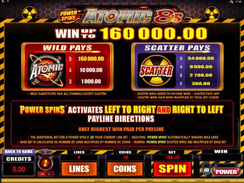 Look right and you will see that the total bet increased and shows $180 for a spin. And once everything remains the same, you have a chance to grab the top jackpot of $160,000 when catching a 5-of-a-kind combo with Atomic 8s Logo. I told you the win is highly explosive!