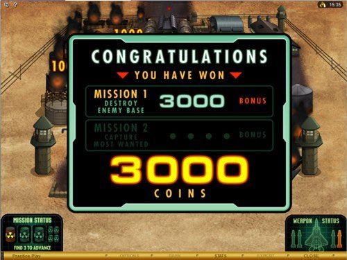 When you successfully meet the first order to locate 3 atomic fuel tanks, you will be advanced to the second mission. This time, you have to show your wit. If you are a good strategist, you will seize the most wanted enemy leader to become a HERO, and yes, get an extra bonus award.