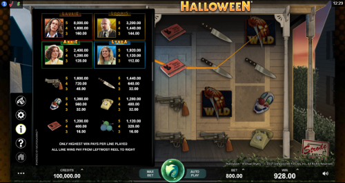 Sure enough, 5 characters of Laurie will bring the top payout to their collector. Those who aren’t ready to face THAT what is behind the door are welcome to use any lower coin size from $0.01 up to $0.50, as well as to decrease the amount of coins from 8 to 1 per line. The minimum stake of $0.50 is very well-known to safe players, but probably not as much to Halloween slot’s high rollers, of course.